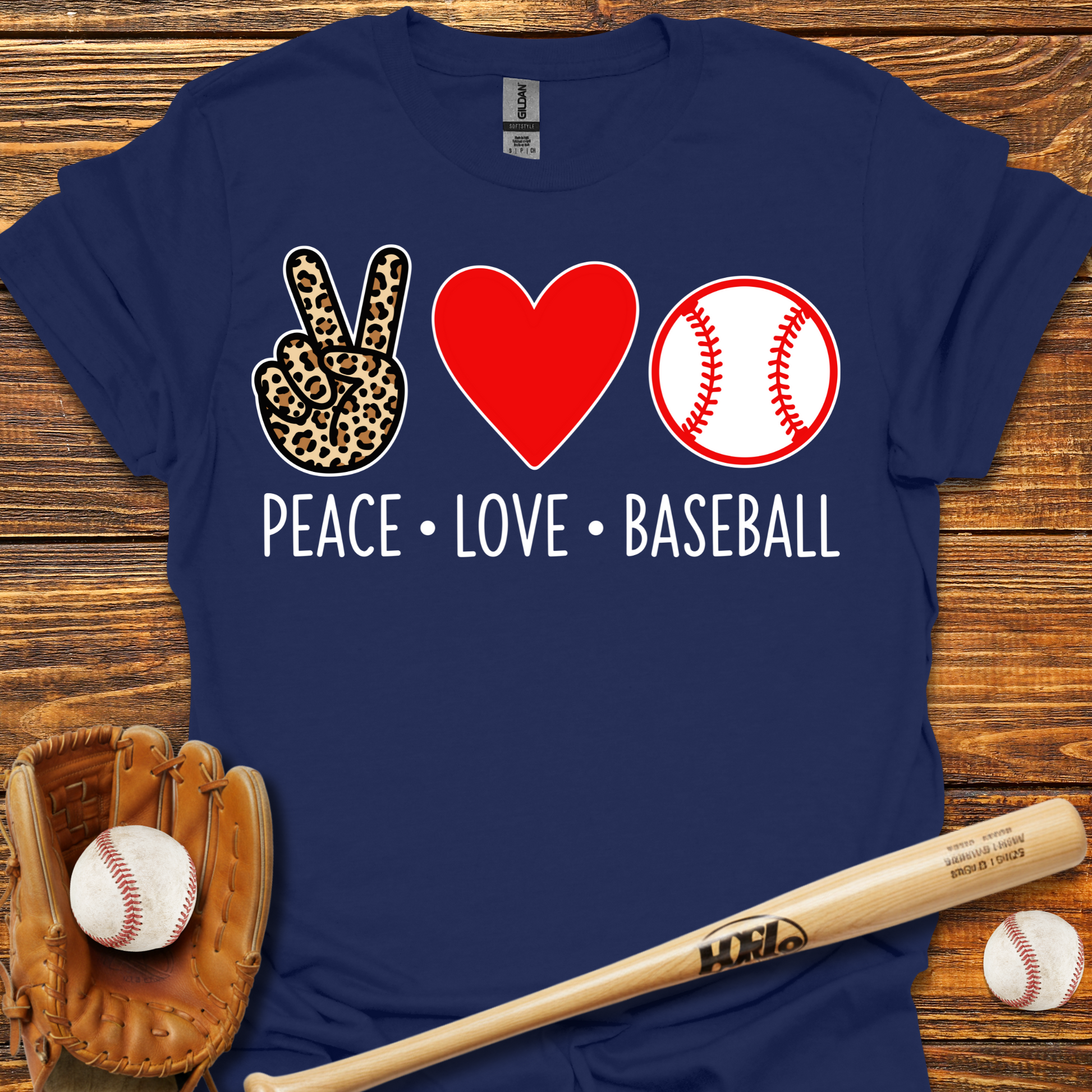Peace Love Baseball Adult T-Shirt